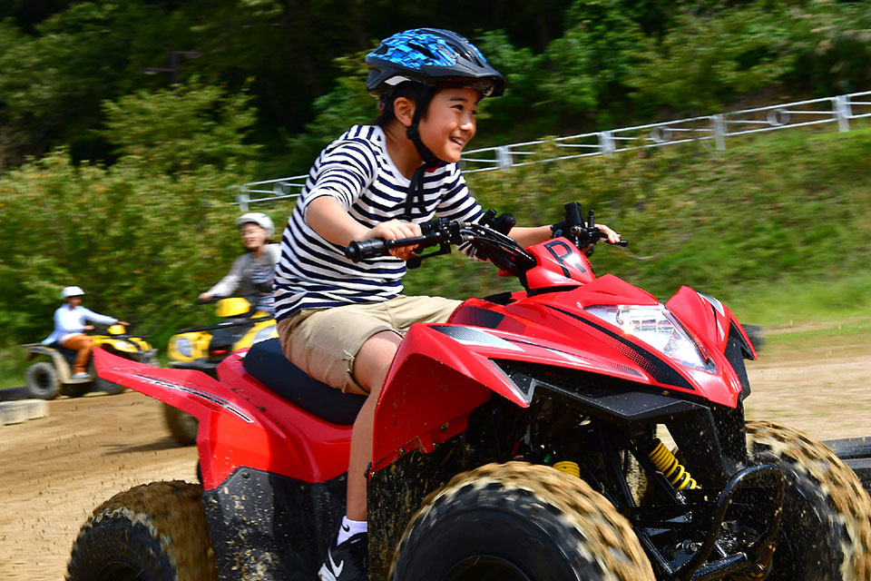 スキー場ゲレンデを利用した、全長約0.9kmのコースです。 四輪バギーにてダイナミックな体験をお楽しみください! スタンダードなグラス(草地)コースですが、ダイナックなアップダウンもありバギーを爽快に楽しめるコースです コース幅も十分あり初心者の方も安心して楽しめますので、是非ご体験ください!