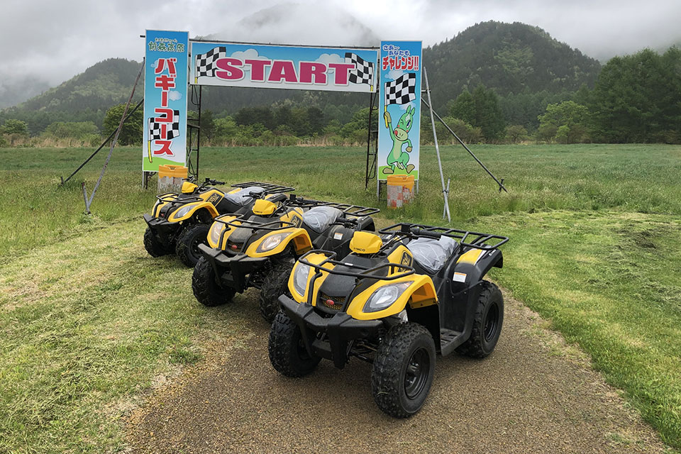 大草原の中で4輪バギーを楽しめます!初心者向けのコースと上級者向けのコースがあり、いずれも中学生・150cm以上の方が乗車可能です。※バギーは土日祝日のみ営業(雨天運休)受付10:00~15:30